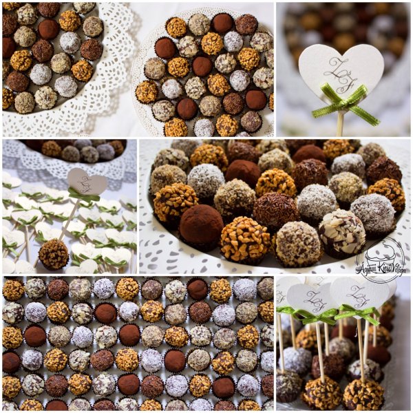 A díszek elkészítése után következett a nagy munka: a golyók megcsinálása 3 kg csokiból:) Összesen 150 trüffel golyót kellett csinálni, de annyira belejöttünk, hogy a végén 194 darab lett. Nagyon jó kis technikát találtak ki nekem. Most még titok, de nem sokára elárulom:)