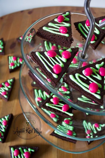 Ha meg vannak a kihűlt háromszögek és piros és zöld habzsákok is, akkor nincs is más dolgunk, mint összegyűjteni a gyerekeket, családot és neki állni kidíszíteni a csokis karácsonyfákat:)