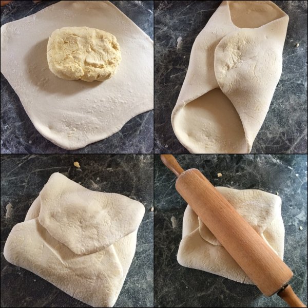 - Kinyújtjuk a tésztát négyszer hajtogatjuk: szimplán-duplán-szimplán-duplán
