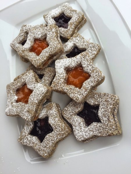 Amikor teljesen kihűlt, tetszőleges lekvárral megkenjük és összeragasztjuk a kekszeket és beporcukrozzuk a tetejét:)