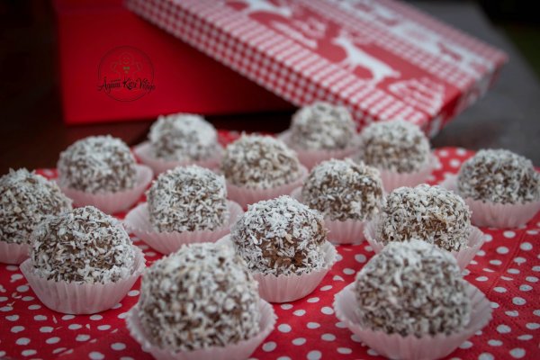 Ezeket a golyókat tavaly karácsonyra készítettük. Mindenki azt hitte róluk – teljes joggal -, hogy egyszerű kókuszgolyók. De amikor megkóstolták őket, akkor jöttek rá, hogy ez több:)